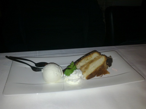 Het nagerecht was ook een waarlijke tractatie : een overheerlijk hazelnoot chocoladetaartje met slagroom en huisgemaakt mascarpone vanilleijs.